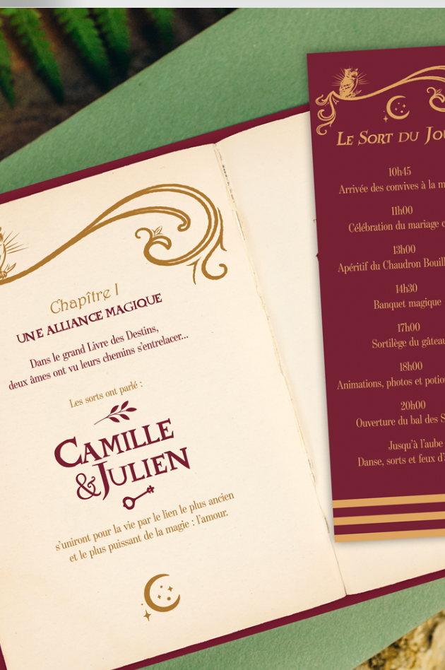 Programme de Mariage – Thème Harry Potter & Grimoire Magique