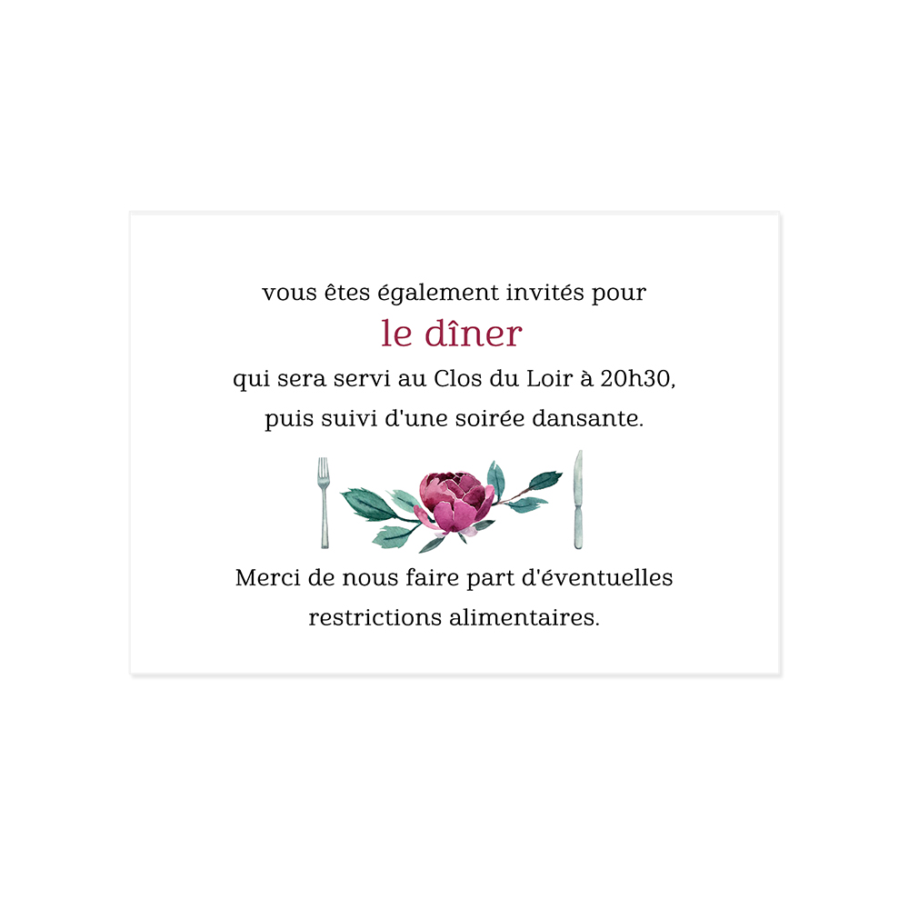 Complétez votre invitation de mariage Love Song avec cette petite carte pour les invités que vous souhaitez retrouver au repas, ou au brunch du lendemain.